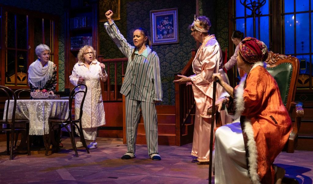 A Forgószínpad elnevezésű színészotthon nappalijában szoktak teázni, kötögetni, kártyázni a hajdani színésznők, az otthon lakói. Egy napon beköltözik Lotta, a valamikori híres díva. Itt él egykori riválisa, May, akivel harminc éve haragban vannak, s az enyhén szólva bolondos Sarita is, aki piromániás kísérleteivel többször kelt riadalmat, sőt szobáját is sikerül felgyújtania. A tragikai pózokban tetszelgő Mary, a csípősnyelvű Cora, az otthon katonás igazgatónője, a jólelkű titkárfiú, az újságírónő és a többiek sorsa mind összefonódik Noël Coward vígjátékában.
